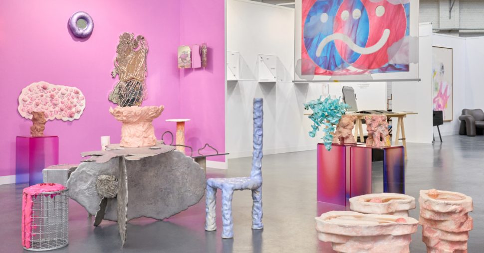 Beaucoup de couleurs à Collectible 2023, notamment du rose entre l’indien et le fuchsia. En témoigne la chaise Alien de Eduard Eremchuk et Katy qui donne l’impression de s’asseoir sur un bloc de cire découpée qu’elle peint ensuite au pistolet de cette couleur qui claque. L’effet est irréel sans que rien ne vienne faire obstacle à son confort premier.