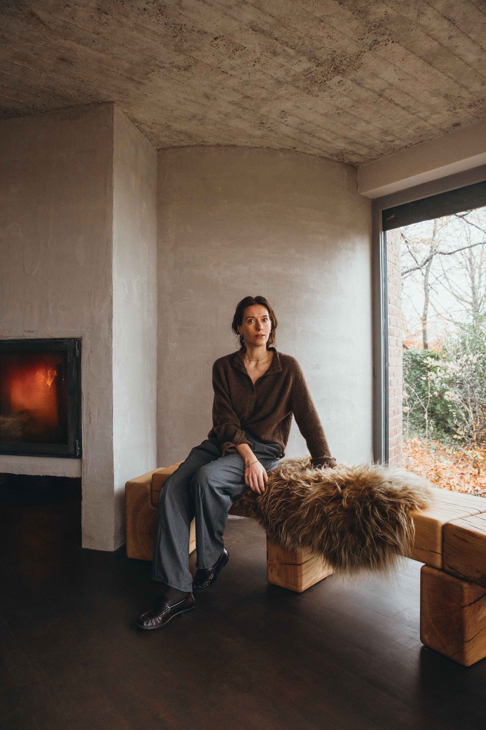 En pénétrant chez Linde Freya Tangelder, on mesure tout l’attrait que le Pajottenland exerçait sur Pieter Bruegel l’Ancien, qui lui a consacré de nombreux tableaux. Niché au fond d’une impasse dissimulée par de paisibles broussailles, à quelques kilomètres seulement, et pourtant à des années-lumière, du tumulte chaotique de la capitale, un magnifique panorama se dévoile derrière une façade basse en briques. Entre douces collines et fermes traditionnelles, ce paysage naturel respire la sérénité, même à l’aube de l’hiver. Alors que la plupart des chasseurs immobiliers l’auraient étiqueté comme lieu de vie idéal, Linde Freya Tangelder y a détecté, au premier regard, son lieu de travail.