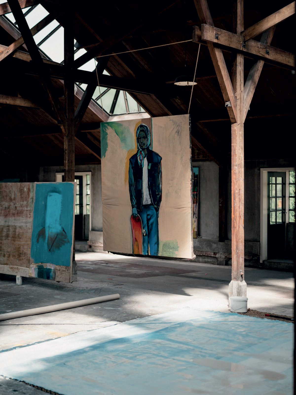 Un jour, mon ami artiste Frederik Molenschot m’y a emmené. Il y a aussi son propre atelier. Le studio servait autrefois de vestiaire pour l’usine. Ce qui m’a frappé, c’est la lumière et la hauteur sous plafond : j’ai su tout de suite que c’était un endroit pour moi. Aujourd’hui, d’autres artistes se sont installés sur le site, ce qui crée une énergie incroyable. Le site est accessible au public, et l’ouverture du ZAMu ne fera qu’amplifier cette effervescence. On peut d’ores et déjà se balader dans le jardin, boire un verre dans un café ou l’autre et manger une pizza dans une sorte d’ancien hangar reconverti.