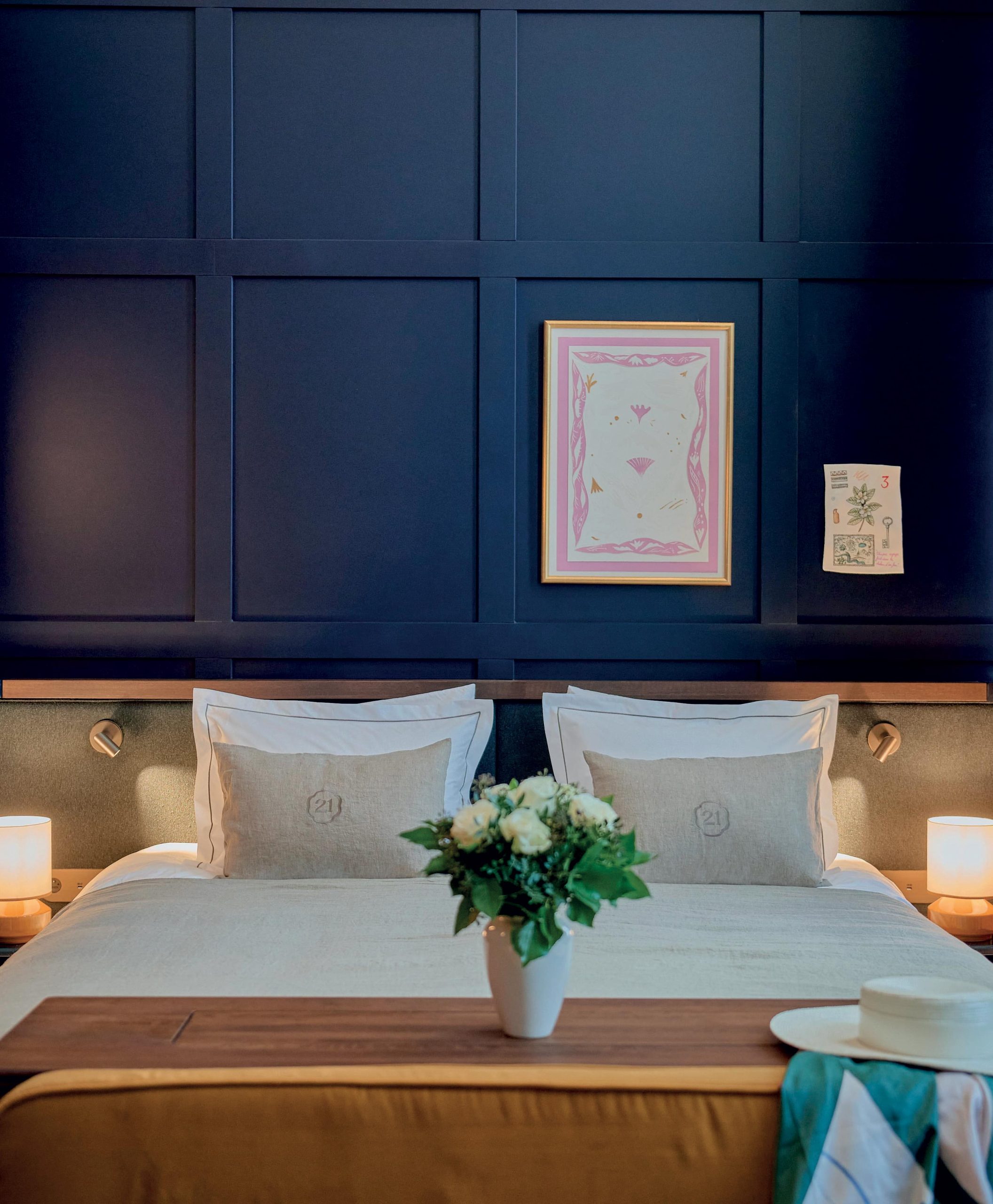 stallé dans deux hôtels de maître du XIXe siècle entièrement restaurés, ce « petit palace » de vingt chambres et suites propose une expérience ultra personnalisée où luxe discret, architecture patrimoniale et hospitalité sincère cohabitent avec élégance. Pensé comme une maison, Faubourg 21 cultive l’art du soin dans les moindres détails : volumes préservés, mobilier sur mesure signé Maison Sarah Lavoine, salons feutrés, jardin intérieur et décoration raffinée composent un refuge à l’écart du tumulte urbain. Les chambres, toutes différentes, mêlent moulures, parquets anciens et matières nobles dans une atmosphère intimiste, entre maison de famille et boutique-hôtel d’exception. Côté assiette, deux restaurants signés par le chef étoilé Kevin Lejeune imposent leur signature. Bistra Noisette, décontractée et espiègle, marie produits de saison et créativité décomplexée. Chaga, table confidentielle perchée au dernier étage, propose une cuisine technique et inspirée autour du feu, dans un décor énigmatique avec vue panoramique sur le Palais Royal. Mention spéciale au Bar 21, installé dans l’ancienne salle à manger du XIXe siècle, où boiseries françaises d’origine, patinées à la main, et nectars rares prolongent le charme. Enfin, le spa Ré Labo de Beauté, conçu comme un sanctuaire de déconnexion, réinvente le bien-être dans les anciennes cuisines de la maison. Trois cabines de soin, un bio-sauna, un thermospa et une salle de sport offrent une parenthèse de ressourcement, dans une ambiance tamisée et chaleureuse, carrelages d’époque en prime. Faubourg 21 pourrait bien devenir l’adresse de prédilection des esthètes en quête de charme. De nuit, comme de jour.