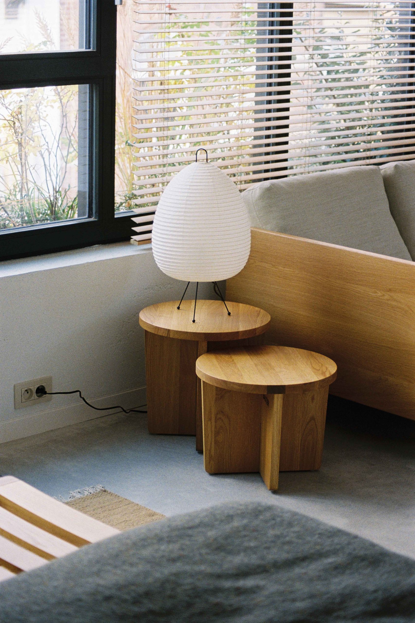 Al ruim tien jaar herdenkt de ontwerpster de designfilosofie rond waarden als eenvoud, kwaliteit en comfort. ‘Als je in een winkel naar een meubel gaat kijken, zie je het maar heel even, vluchtig. Ik wilde die zintuiglijke ervaring indertijd verlengen en heb daarom Café Bautier geopend, midden in de showroom’, vertelt ze. Met de twee nieuwe appartementen boven het café tilt de ontwerpster die ervaring nu nog een niveau hoger. ‘Ik wilde leefruimtes creëren die exact inspelen op wat ik zelf zoek wanneer ik reis: comfort, een compacte kamer die meteen rust brengt, een plek om te landen. Elke ruimte heeft een eigen keuken waar je kunt eten of gewoon een kopje koffie kunt drinken.’ Het resultaat is een uitgesproken zintuiglijke ervaring: gasten kunnen aanschuiven aan tafel of zich met een boek nestelen op de sofa. Het volledige interieur, van meubels tot huishoudlinnen, komt uit haar eigen Bautier-collectie. Op de tweede verdieping ontvouwt zich een hal waar een zeldzame, bijna kostbare stilte heerst. Hij is donker olijfgroen geschilderd en opent naar een patio met weelderige beplanting, omringd door grote ramen en gedeeld door beide appartementen. Tussen het groen laten twee lichtkoepels daglicht neerdalen tot in de winkel op de verdieping eronder. De 34 m² grote studio is de persoonlijke favoriet van Marina Bautier, maar het 45 m² grote appartement beschikt dan weer over een eigen terras. De interieurs ademen warmte en de natuurlijke tinten vangen en weerspiegelen het licht van de rooftop. Witte pigmenten kleuren de betonnen vloeren, terwijl structuurpleister op muren en plafonds de ruimtes extra diepte en materialiteit geven. In de badkamers voert groen de boventoon, met ongeglazuurde tegels die een pure, natuurlijke textuur bieden. En in elk appartement wacht een chic detail: het Local Guide Book, in 2024 uitgegeven door Marina Bautier, met een selectie van de mooiste adressen van creatieve Brusselaars.