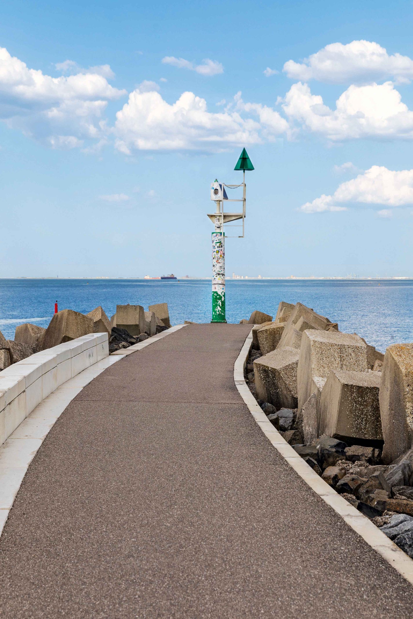Havenlicht aan de ingang van de haven van Cadzand in Nederland
