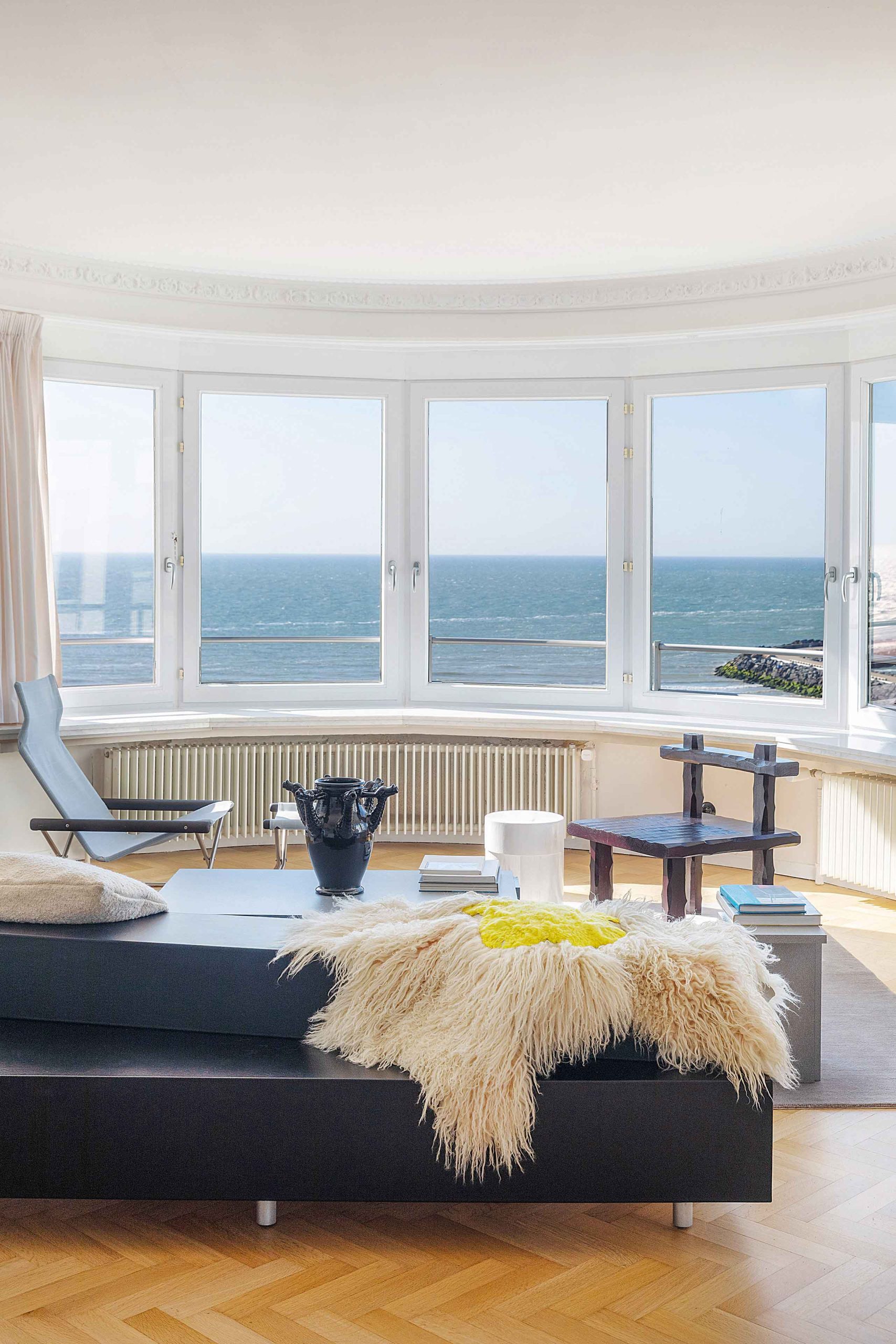 Deze bed & breakfast op de achtste verdieping van een gebouw op de Oostendse zeedijk is ingericht met meubels en spullen van hedendaagse ontwerpers. Ze zijn te koop en worden elk jaar vervangen.