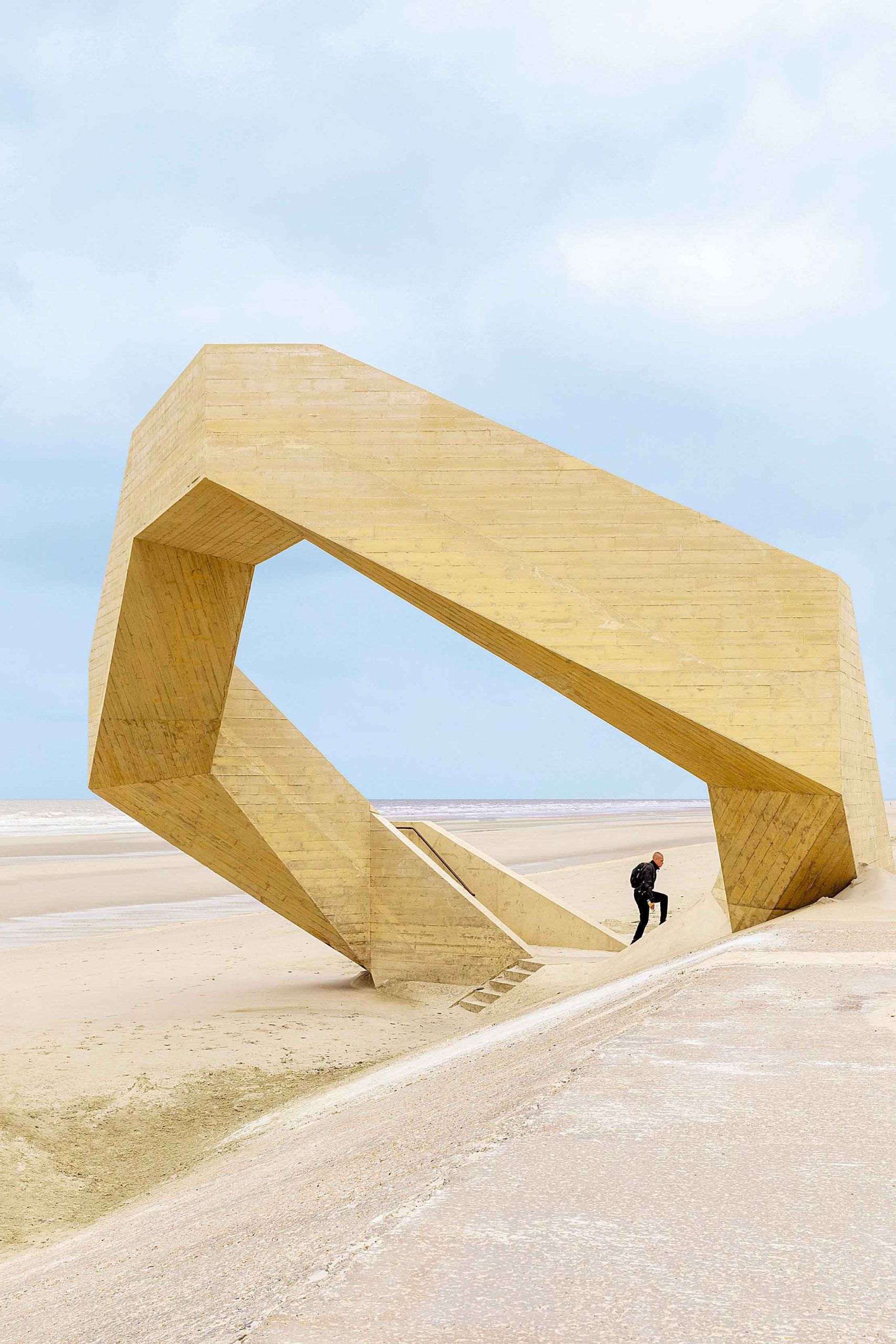 Er is een stuk Noordzeekust van een zeventigtal kilometer dat wordt opgedeeld in Nederland, België en Frankrijk. Ooit was dit echter één aaneengesloten gebied met uitgestrekte, lichtgekleurde zandstranden. Vandaag onderscheidt het zich door een rijkdom aan hedendaagse architectuur en artistieke creaties die een directe dialoog met de natuur aangaan. Foto’s Roberta Valerio voor IDEAT