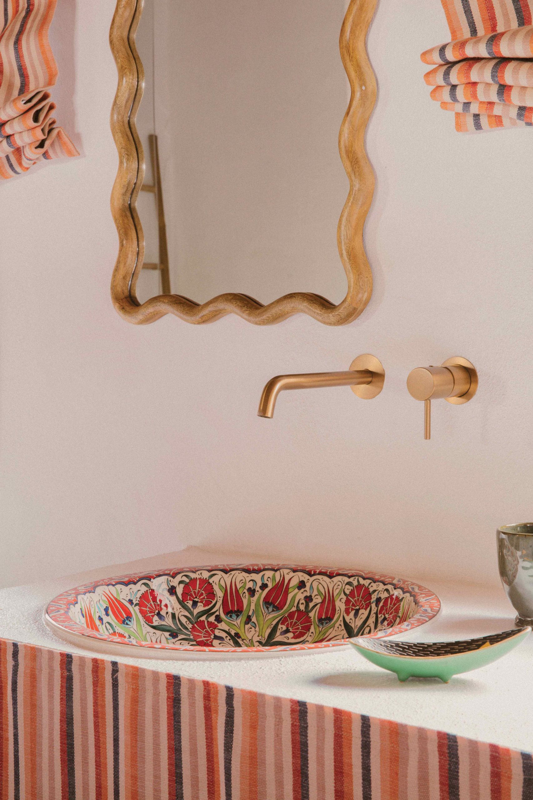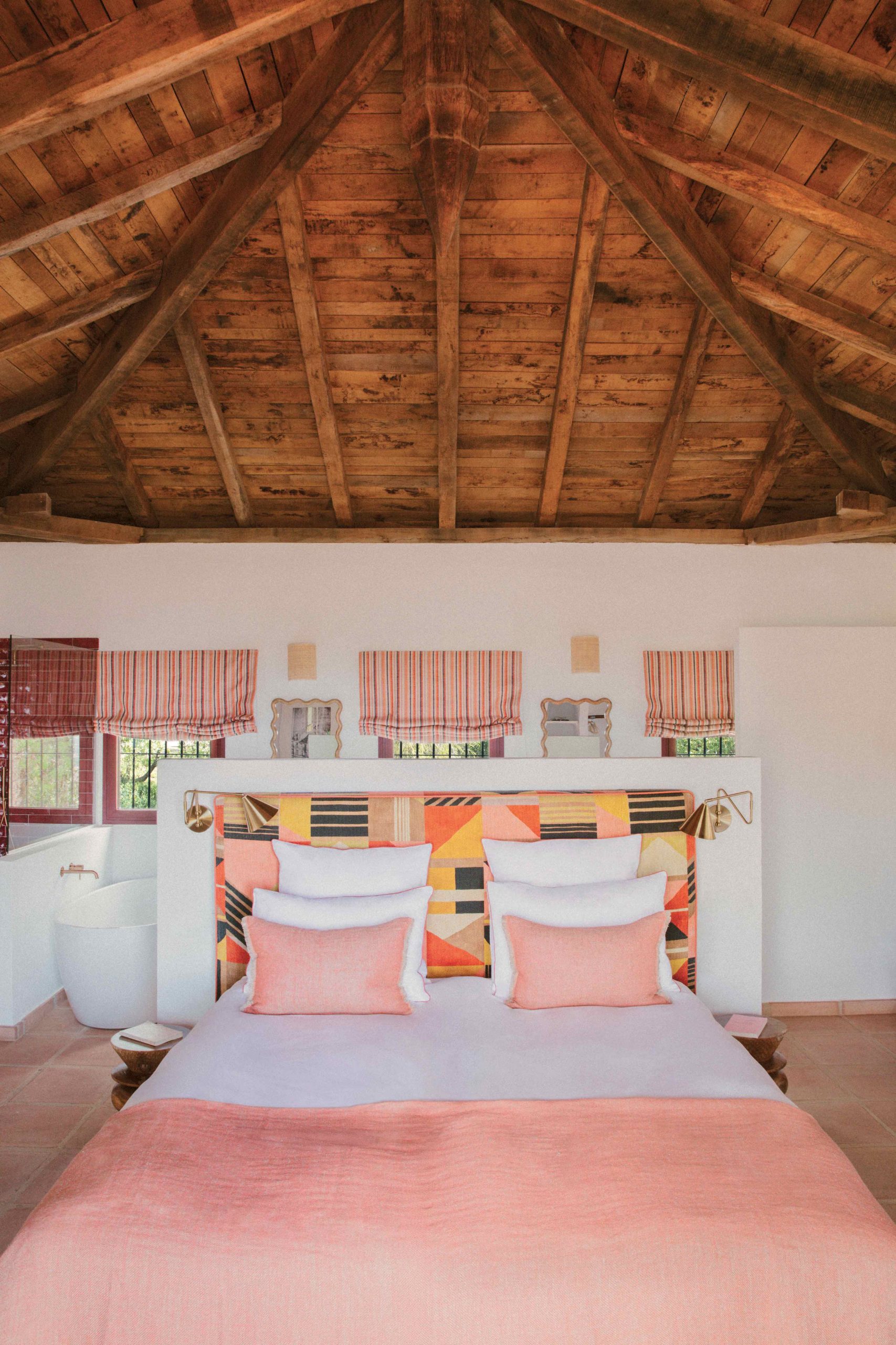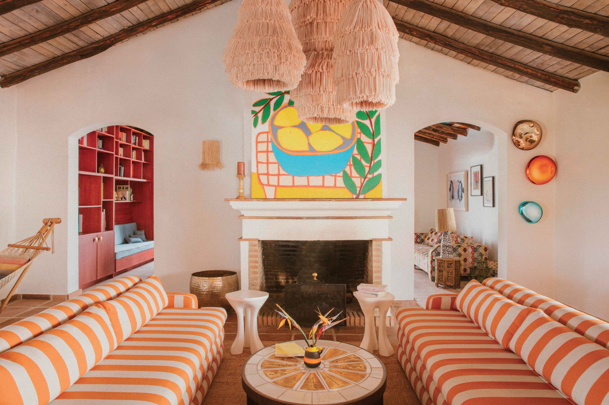 Niet echt. Ik wilde alleszins vermijden om in een folkloristische of voorspelbare visie van Andalusië te vervallen. Wat me wél inspireerde, is de nabijheid van Marokko en Noord-Afrika. Die invloeden duiken op in de natuurlijke materialen, oosterse accenten en objecten die we meenemen van reizen… Ook een subtiele knipoog naar Palm Beach zit erin met zijn poederroze en witte gestreepte parasols, vrolijke contrasten, uitgesproken kleuren. De bedoeling was om een soort zachte levenskunst op te roepen – zonder het er te dik op te leggen.