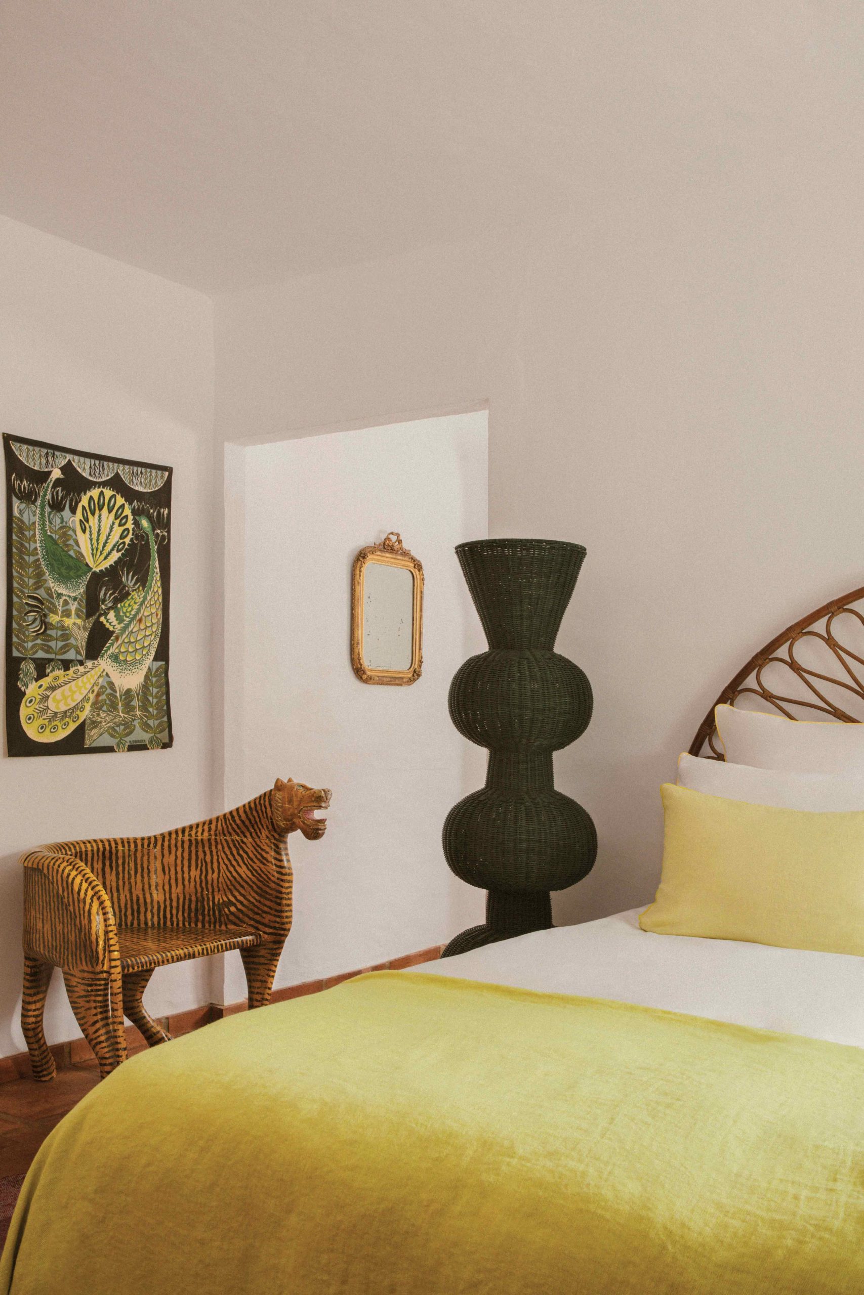 Ik heb dit huis ontworpen voor mijn zus, die ook de eigenares is. Dat verandert natuurlijk de manier waarop je zo’n plek benadert. We wisten van meet af aan dat het geen klassiek hotel of standaard B&B mocht worden. We wilden iets bijzonders, iets hybride – gastvrij, maar niet te afgeborsteld. Zoals de naam al suggereert, is Cortijo Genesis een plek voor een nieuwe start. Het domein telt vijf kamers, elk met een eigen identiteit. Er zijn paarden, een permacultuurtuin… Je kunt hier deelnemen aan yoga sessies of simpelweg komen herbronnen. Het is een echt toevluchtsoord, in de diepste zin van het woord.